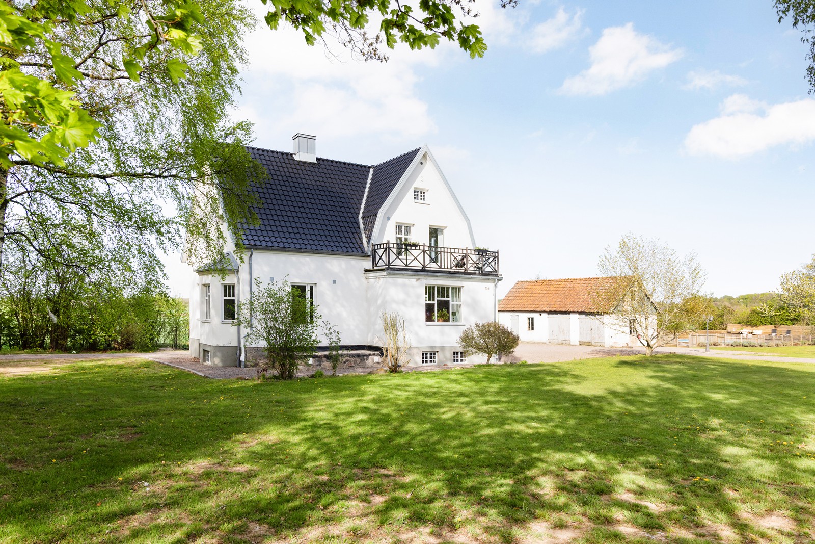 Lantlig dröm med vita fasader och vidsträckta vyer