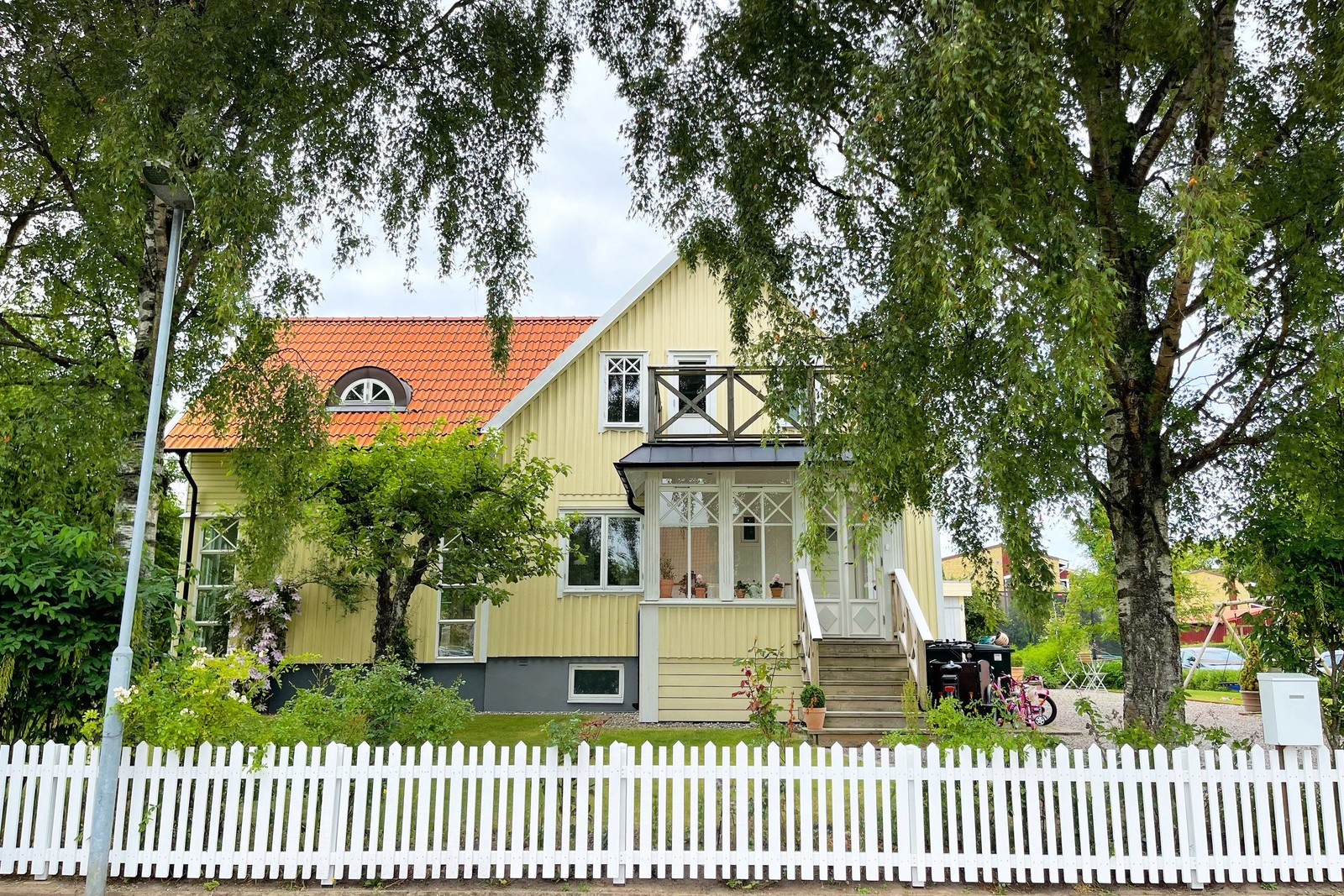 Välkommen till ett smakfullt hem där klassisk snickarglädje harmoniskt förenas med moderna bekvämligheter. Här möts du av en villaidyll med vita knutar, gul träfasad, spröjsade fönster och en charmig punchveranda som allt går i en tilltalande och tidlös stil. Huset ligger vackert på en hörntomt på en stillsam gata, nära allt du kan tänkas behöva i vardagen.