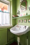 Den charmiga verandatrappan på husets västra gavel används som husets entré. Hall med klinkergolv och mindre badrum med dusch, wc och tvättställ.