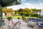 I hörn av trädgården ligger stensatt uteplats där kvällssolen avnjutes.
