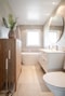 2020 - Badrum uppe med Vitt/beige granitkeramik och elburen golvvärme och handdukstork (kvalitetsdokument finns)
