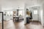 Det rymliga köket och matsalen är i öppen planlösning, allt smakfullt renoverat i ljusa, sobra färger och de stora fönstren ger ett fint ljusinsläpp.