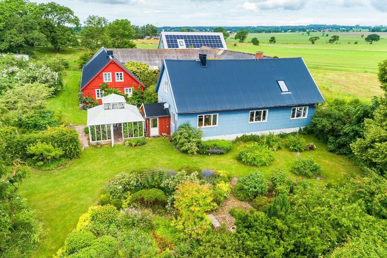 Tomten är på nära 7 000 kvm och trädgården är en sann dröm för trädgårdsälskare, med mängder av blommor, planteringar och odlingar. Nuvarande ägare har skapat en grönskande oas med olika rum att njuta av, här spenderar man timmar med att bara njuta av färgerna och dofterna.