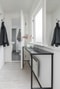 Lägenheten har egen ingång och direkt access till den gemensamma trädgården. Du kommer rakt in i en liten hall med avhängningsmöjligheter och med ett avlastningsbord i svart marmor, och fortsätter in i det stora rummet som är avdelat i två avdelningar.