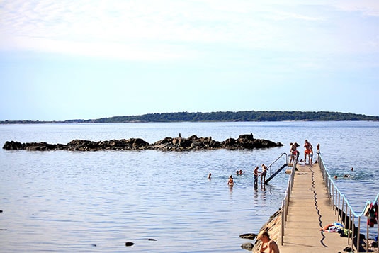 Dagliga dopp från morgonbryggan är en tradition som utförs av de boende året om, men vill man ha lite mer avslappnat solbad så finns också en sandstrand strax norr om hamnen eller fina badmöjligheter ute på Hallands Väderö, samt på de sandstränder som finns både norrut och söderut längs Bjärehalvöns kust.
