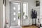 Du välkomnas av en rymlig hall med vacker ekparkett och ljusa släta väggar som följer oss vidare i hela huset. I hallen finns gott om plats för ytterkläder och i hallen finns även en stor klädkammare.