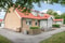 Redan på framsidan av huset möts du av en inbjudande uteplats som passar utmärkt för morgonkaffet. Här finns även ett isolerat förråd som ger gott om utrymme för cyklar, redskap och säsongsförvaring – praktiskt och lättillgängligt precis intill entrén.