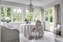 Nyrenoverat kök med gråa luckor, härligt ljusinsläpp från fönsterna mot trädgården. Vitmålat brädgolv och vacker vitmålad träpanel på väggarna.