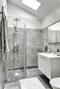 Tar vi nu trappan upp till övre plan så kommer vi upp i ett allrum som tar en vidare in till de två sovrummen på detta plan och badrummet. Badrummet renoverades av nuvarande ägare med plastmatta på golv och väggar. Takfönstret bytes ut och ger ett härligt ljusinsläpp! Vidare utrustat med kommod med handfat, toalett och dusch med duschväggar i glas.