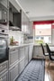 Tillbaka i hallen så når vi här badrummet som renoverades år 2019 med kakel och klinkers i grå ton. Här finns dusch, kommod, högskåp och toalett. Mycket smakfullt! Bredvid badrummet ligger köket som renoverades samma år. IKEA kök med grå luckor, kaklat stänkskydd och laminatbänkskiva. Här är maskinparken helt utbytt i samband med renoveringen och den består av diskmaskin, kyl/frys, ugn, spishäll, mikro och fläkt. Plats för köksbord utmed fönstren som vetter ut mot framsidan av huset. Från köket kommer vi vidare in till groventrén, som nås via gaveln på huset, där även tvättstugan är belägen. Här finns tvättmaskin och torktumlare samt goda arbetsytor. Mitt över köket finns de två sista sovrummen vilket gör detta hus till den perfekta familjevillan!