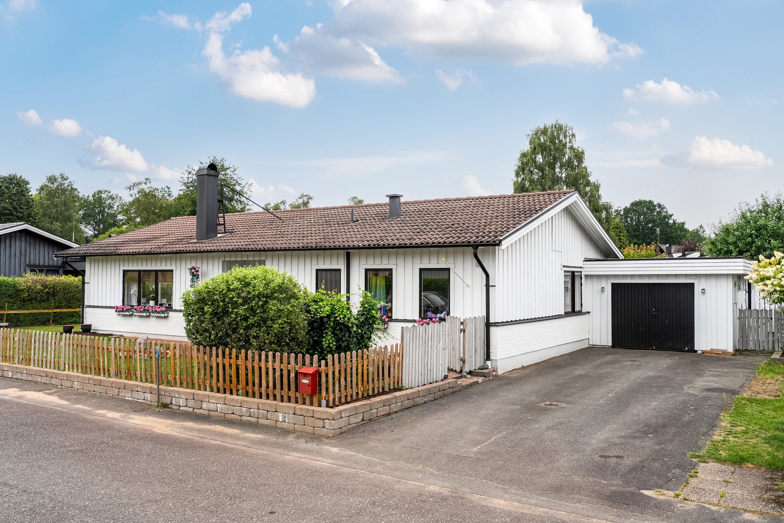 Huset om 135 kvm rymmer hela sex rum och kök, allt fördelat på ett och samma plan – smidigt, tillgängligt och funktionellt. Planlösningen är väldisponerad, med gott om sällskapsytor och flera sovrum att växa i. I vardagsrummet möts du av rymd tack vare att taket är öppet upp i nock och ett stort fönsterparti som sträcker sig från golv till tak – ett ljusflöde att längta hem till. Kaminen värmer gott under höstkvällar och skapar stämning året om.