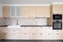 På andra plan finner vi den första lägenheten med med genomgående vita väggar och grå golv. Kök i vitt utförande med spis, fläkt, ugn och kyl/frys. Vit kakel mellan över och underskåp samt silvriga beslag. Vidare bjuder denna bostad på tre sovrum och ett vardagsrum med en underbar kakelugn samt gästtoalett. Badrum med kakel och klinkers i samma stilrena toner. Utrustat här med toalett, handfat och dusch.