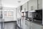 Direkt till höger om hallen möts du av ett trivsamt parallellkök med bra arbetsytor och matplats vid fönstret. Inredningen går i vitt med grå bänkskiva och stänkskydd i svart. Ett mörkgrått laminatgolv möter vitmålade väggar. Här finns spis med ugn, dubbeldiskho samt hel kyl och frys – allt du behöver för att komma igång med matlagningen.