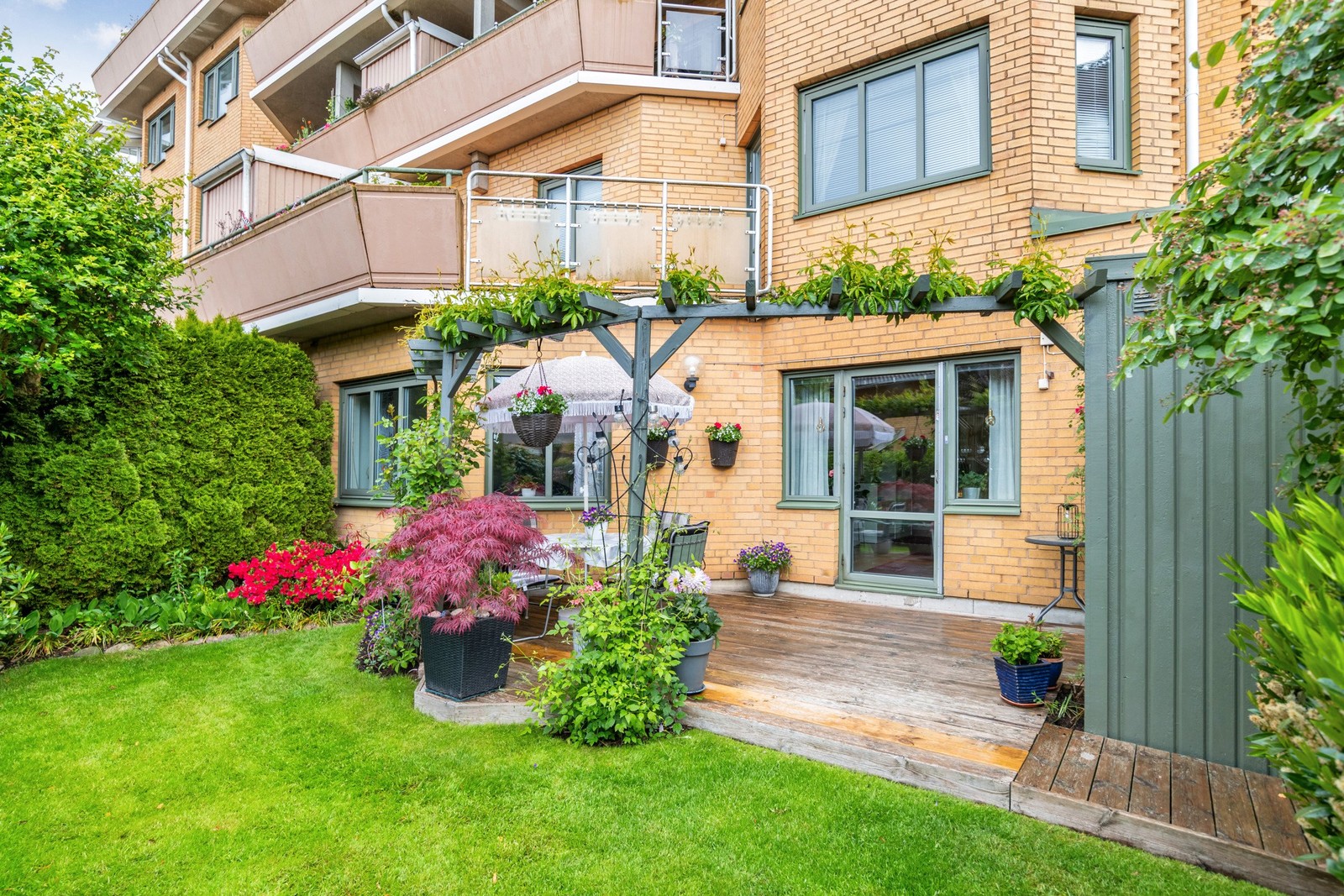 Bo bekvämt och i praktiskt bostadsrättsformat med trädgårdssida i härligt söderläge!