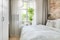 Sovrummet erbjuder gott om plats för både dubbelsäng och klädförvaring, och har ett fönster i rofyllt läge med utsikt mot en grönskande uteplats.