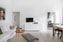 I anslutning till vardagsrummet ligger det eleganta köket i en sober grå nyans med generösa förvaringsmöjligheter. De höga vitrinskåpen, försedd med innerbelysning, är vackert spröjsade och bidrar till en luftig känsla. Vitvarorna, inklusive diskmaskin, är smakfullt integrerade för en enhetlig och stilren helhet. Den robusta bänkskivan i massiv ek ger rikligt med arbetsyta, och genom de två stora västerfönstren flödar solljuset fritt.