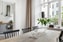 Vardagsrummet bjuder på en imponerande takhöjd på över 3,3 meter och ett stort västerfönster på mer än två meter som fyller rummet med ett varmt och naturligt ljus. Det vackert slipade och behandlade brädgolvet tillsammans med den dekorativa takrosetten skapar en äkta sekelskifteskänsla. Rummet är rymligt nog för både en generös soffgrupp och en större matplats för 4–6 personer, vilket gör det till en perfekt plats för både avkoppling och sociala tillfällen.