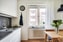 I hallen och köket ligger ett stilfullt laminatgolv i träimitation från 2017. Direkt till vänster sett från ingången når du köket, ett praktiskt och snyggt Ikea-kök. Här erbjuds gott om förvaring bakom släta vita luckor och generösa arbetsytor. Maskinparken i köket består av kyl och frys, diskmaskin, ugn, häll samt fläkt.