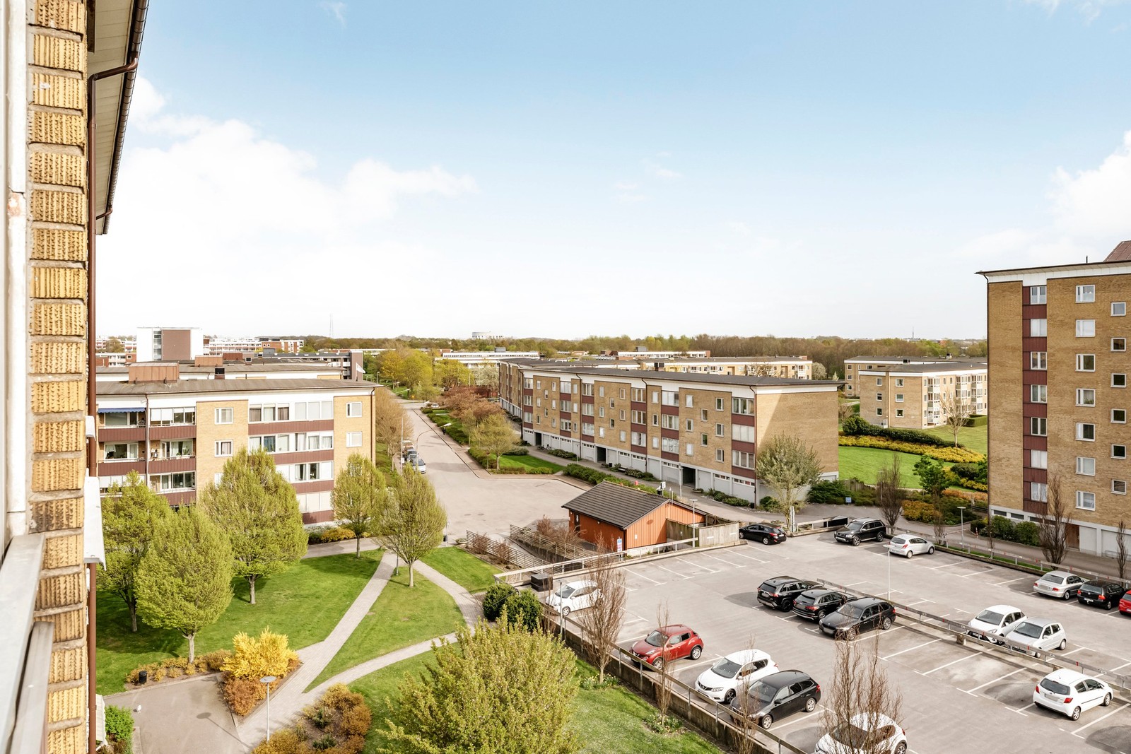 Varmt välkomna till denna trivsamma och luftiga 3:a på populära Frontgatan – en plats där både komfort och utsikt samspelar i perfekt harmoni. Redan från markplan tar hissen dig smidigt hela vägen upp till våning 6, där bostaden breder ut sig högt över trädtopparna med en fantastisk grönskande vy som möter blicken. När du kliver in möts du av en inbjudande och generös hall, med gott om plats för både ytterkläder och skor, snyggt dolt bakom praktiska skjutdörrsgarderober och en rymlig klädkammare. Köket är fräscht och välplanerat med en mysig matplats – perfekt för både vardagsfrukostar och långa middagar. Härifrån kliver du ut på bostadens pärla – en solig balkong med vidsträckt utsikt som bjuder in till avkoppling året om.