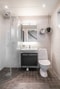 Badrum 1 på entréplan är modernt och totalrenoverat 2012. Med svart granit klinker på golvet och ett snyggt beigevit kakel på väggarna. Tak med med behaglig belysning i from av infällda spotlights. Badrummet är utrustat med skön golvvärme (el), handdukstork (el), wc (IFÖ), badrumsskåp (Svedbergs), handfat (Svedbergs), dusch (Damixa), högskåp (Svedbergs).
