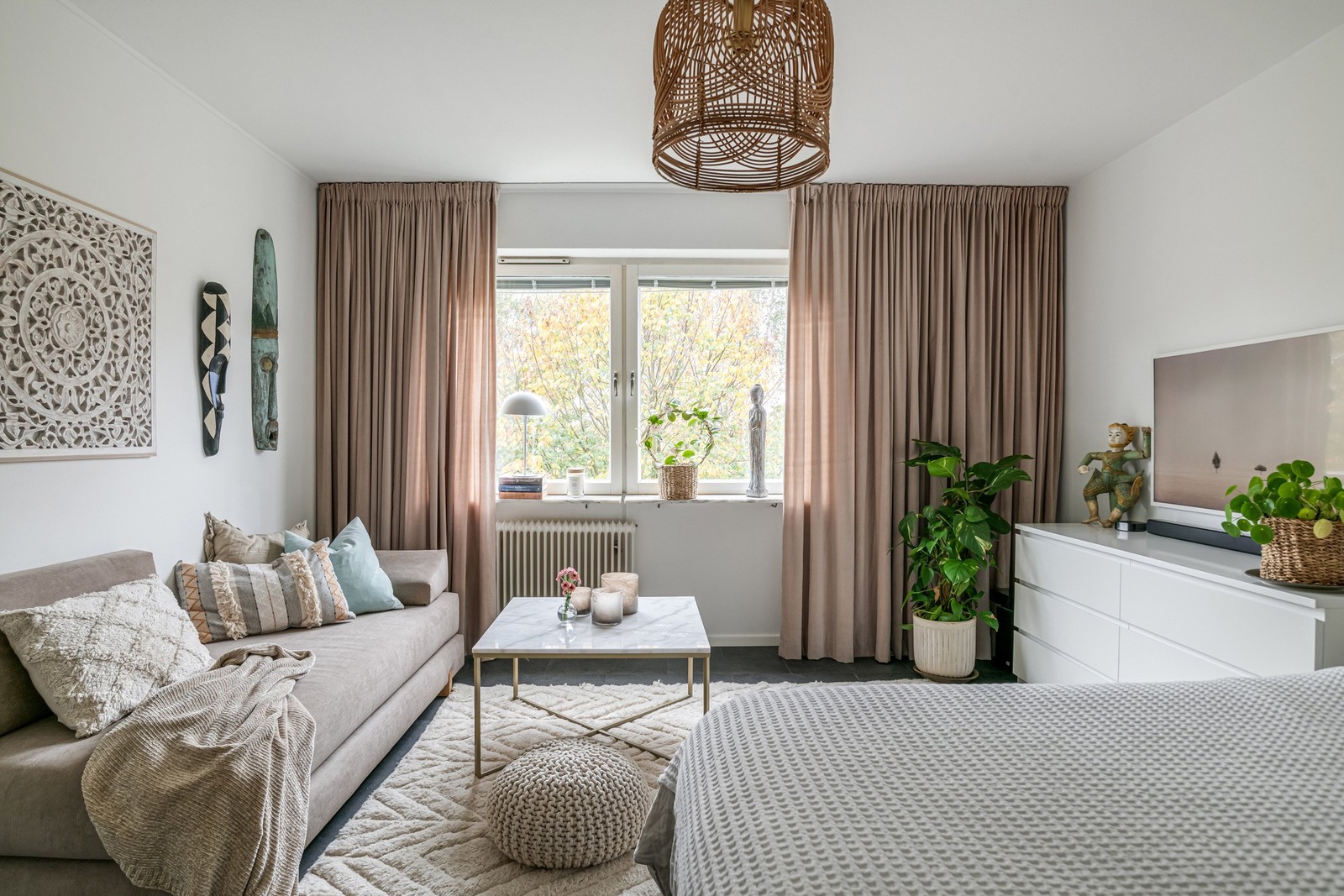 Det rymliga vardagsrummet har en smart planlösning med gott om plats för både soffa och säng – perfekt för en flexibel och trivsam vardag. Badrummet är helkaklat och fräscht med dusch, och flera inbyggda garderober erbjuder utmärkt förvaring i hallen.