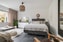 Lägenheten erbjuder ett nyrenoverat, modernt kök med smakfulla mörka luckor och detaljer i svart och guld, kombinerat med en tålig bänkskiva i laminat. Här finns plats för ett matbord för upp till fyra personer och ett härligt ljusinsläpp med utsikt mot grönska.