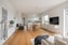 Vardagsrummet möter köket i en öppen och social planlösning med generösa ytor där en större soffgrupp enkelt får plats. Härifrån nås även bostadens ena balkong, perfekt för att förlänga sällskapsytorna under årets varmare dagar.