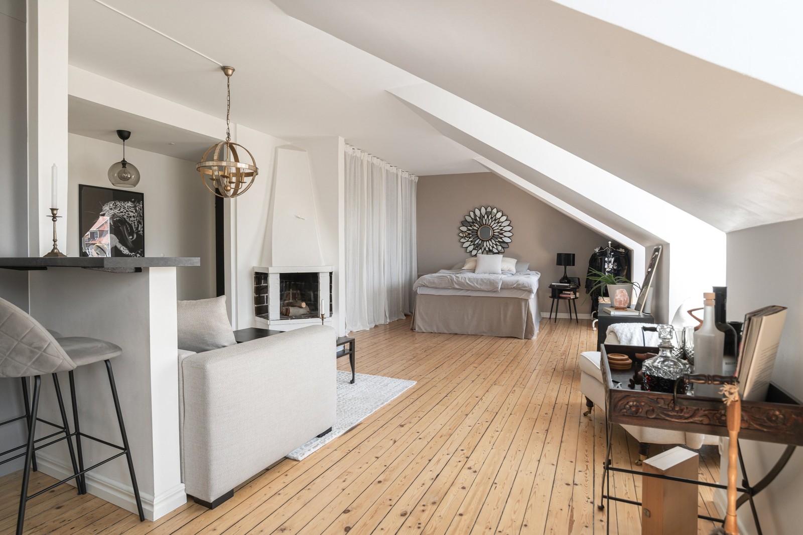 Varmt välkommen till Kullagatan 40B och denna öppna och ljusa vindsvåning mitt i Helsingborgs hjärta!