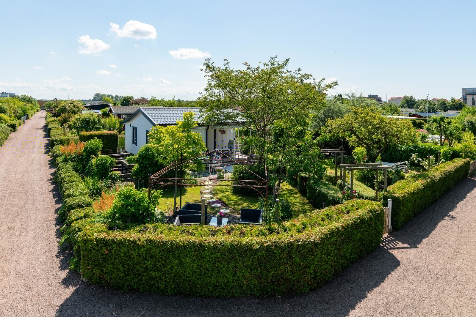 På grusgångarna mellan kolonierna som är döpta efter blommor och träd tar du dig enkelt fram till denna mysiga och välplanerade kolonistuga med en stor, solvänlig och lummig trädgård. De välplanerade kvadratmeterna inkluderar även den stora och härliga uteplatsen där många och långa middagar kan spenderas. Köket är socialt och rymligt, sovalkoven rymmer en stor säng och badrummet är utrustat med toalett, handfat med kommod och duschkabin.