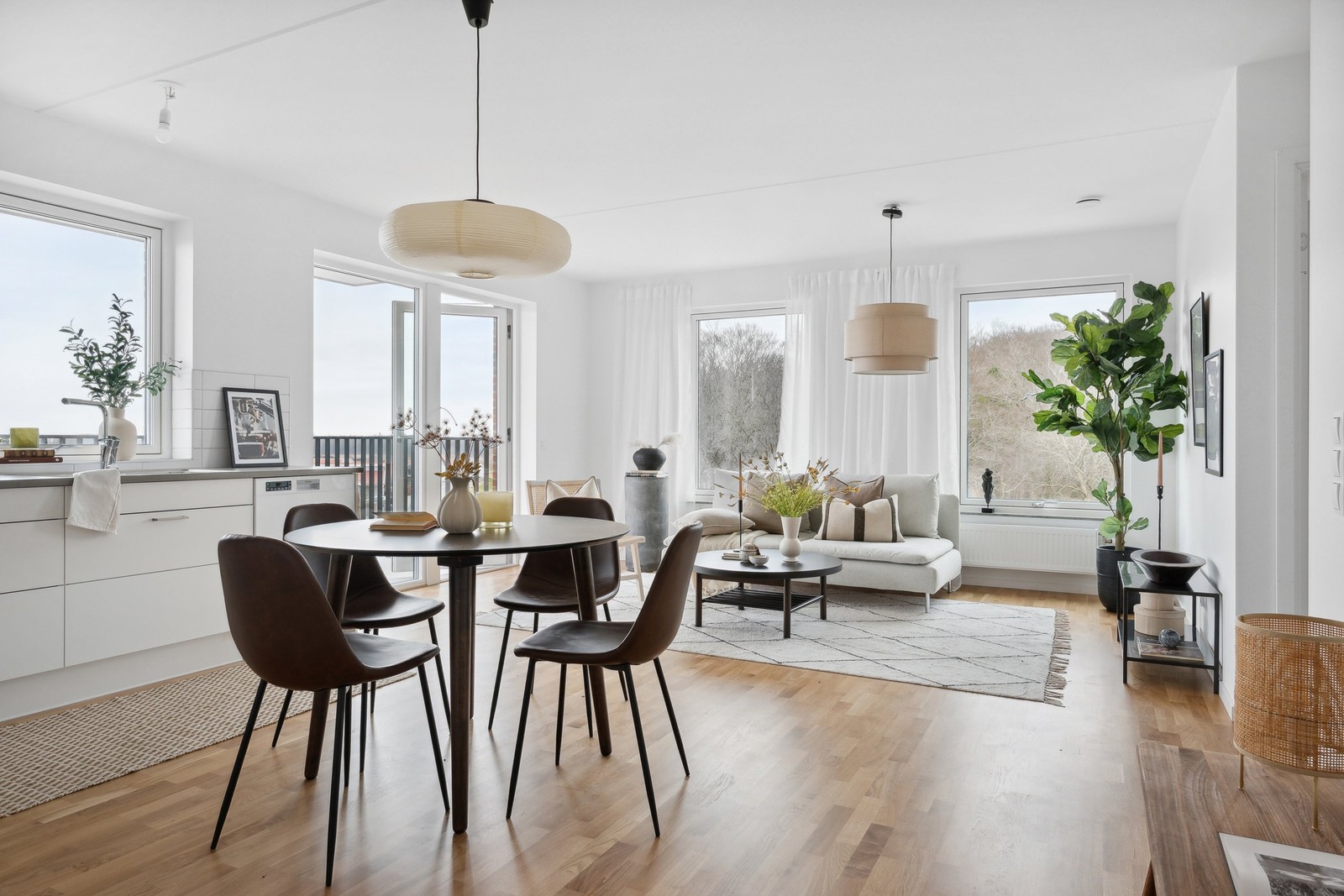 Välkommen till denna stilfulla, nyproducerade fyrarummare – en bostad där ljuset flödar in genom stora fönster och där balkongen bjuder in till både morgonkaffe och ljumma sommarkvällar.