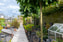 Ett system av smala trädgårdsgångar i trä tar över på villans andra sida. Här reser sig grönskan längs gångar, korridorer och gröna rum. Tonen är asiatisk med inslag av mörk singel, stenplattor, lövträd, flera pergolas med klätterväxter, odlingsbänkar, kryddträdgård, rabatter, uteplatser mm. Ett större växthus i svart industristil tronar i ytornas mitt.
