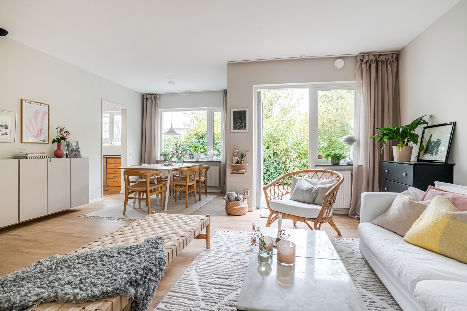 Charmig och ljus tvårummare inbäddad med en lummig och grönskande trädgård!