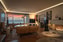 I vinkel och i halvöppen planlösning ligger våningens bibliotek med platsbyggda bokhyllor och skåp i vitt. Fiskbensparketten följer med in i ett rum präglat av massivt ljus från två håll. Här har arkitekten utnyttjat gavelläget och lånat funktionalismens klassiska fönstersättning som möts i hörnet. Fyra stora, kvadratiska glaspartier breddar perspektiven ut över sundet och upp mot Pålsjö skogs grönskande höjder. Intrycket är svårslaget och rummet får en extra skyddad atmosfär av grenverkets grönska utanför. Bland de utsökta detaljerna finns smäckra fönsterbänkar i natursten samt elementskydd i ribbträ