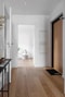 Vidare in i bostaden finner ni ett väl tilltaget master bedroom som vetter mot innergården och som har goda förvaringsmöjligheter. Badrummet är helkaklat och försett med samtliga bekvämligheter som förväntas av ett modernt badrum. Bostadens andra sovrum vetter lika så mot innergården och vidare genom hallen finner ni även bostadens gäst-wc. Väggarna är genomgående vita och på golvet vilar ett exklusivt plankgolv av enstavig ek.