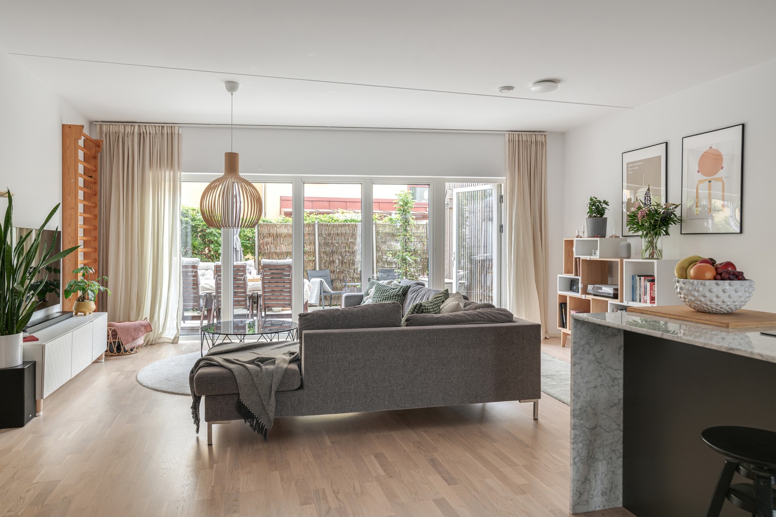 En familjeoas i markplan med privat söderläge och parkering precis utanför dörren.