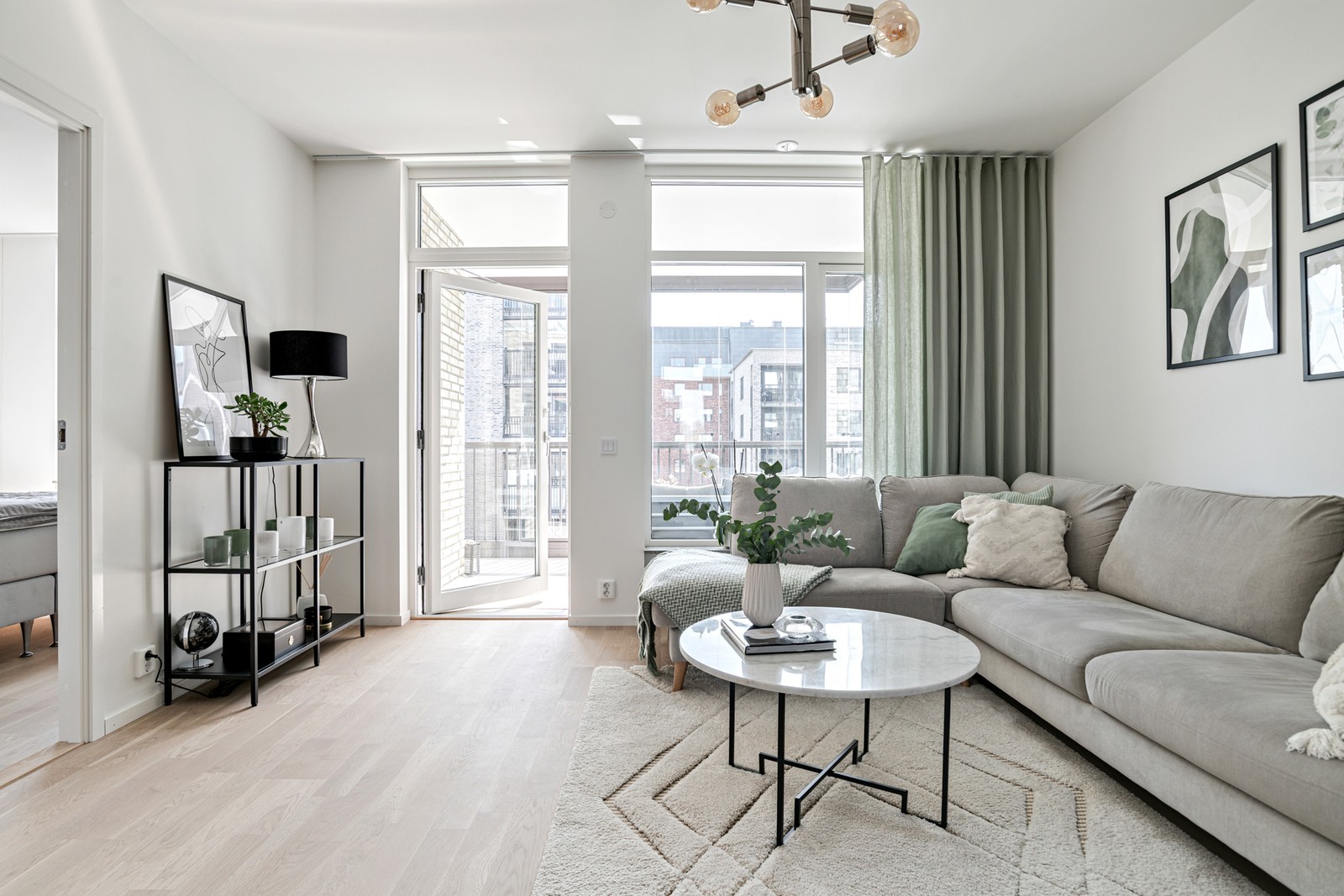 Stilfull tvåa med inglasad balkong i nybyggt hus – nära hav, skog och stad i Pålsjö!