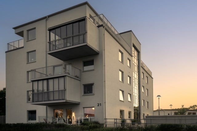 Varje lägenhet har ett tillhörande förråd i källaren.