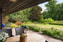 Den vackra trädgården har många sköna avskilda uteplatser och utgör en trygg och inspirerande plats för både lek och odling. Här finns utrymme för studsmatta, bollspel, blomsterland eller egna odlingar. Eftersom tomten gränsar direkt mot Brunnsparken känns den ännu större och inramas naturligt av grönska.