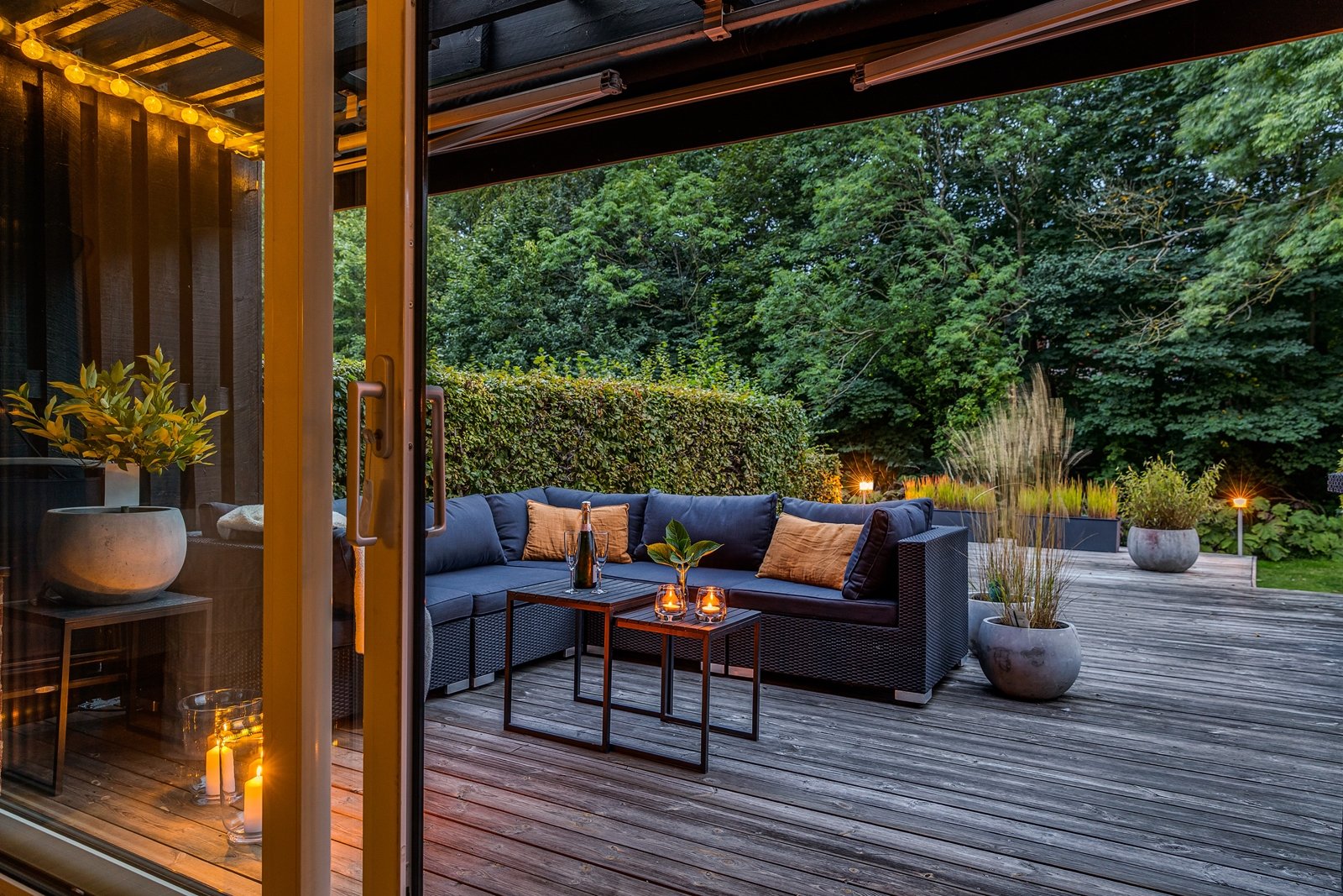 Hela bostaden men framförallt entréplan bjuder på öppna ytor, väldisponerade planlösning och ljuvligt genomgående ljusinsläpp som bara är några av många fördelar med denna bostad. Den idylliska och lummiga terrass i söderläge fylld med natur blir snabbt favoritplatsen under årets varma månader. Här har du även ett stort trädäck där du kan möblera fritt och finna rekreation i de solrika läget.