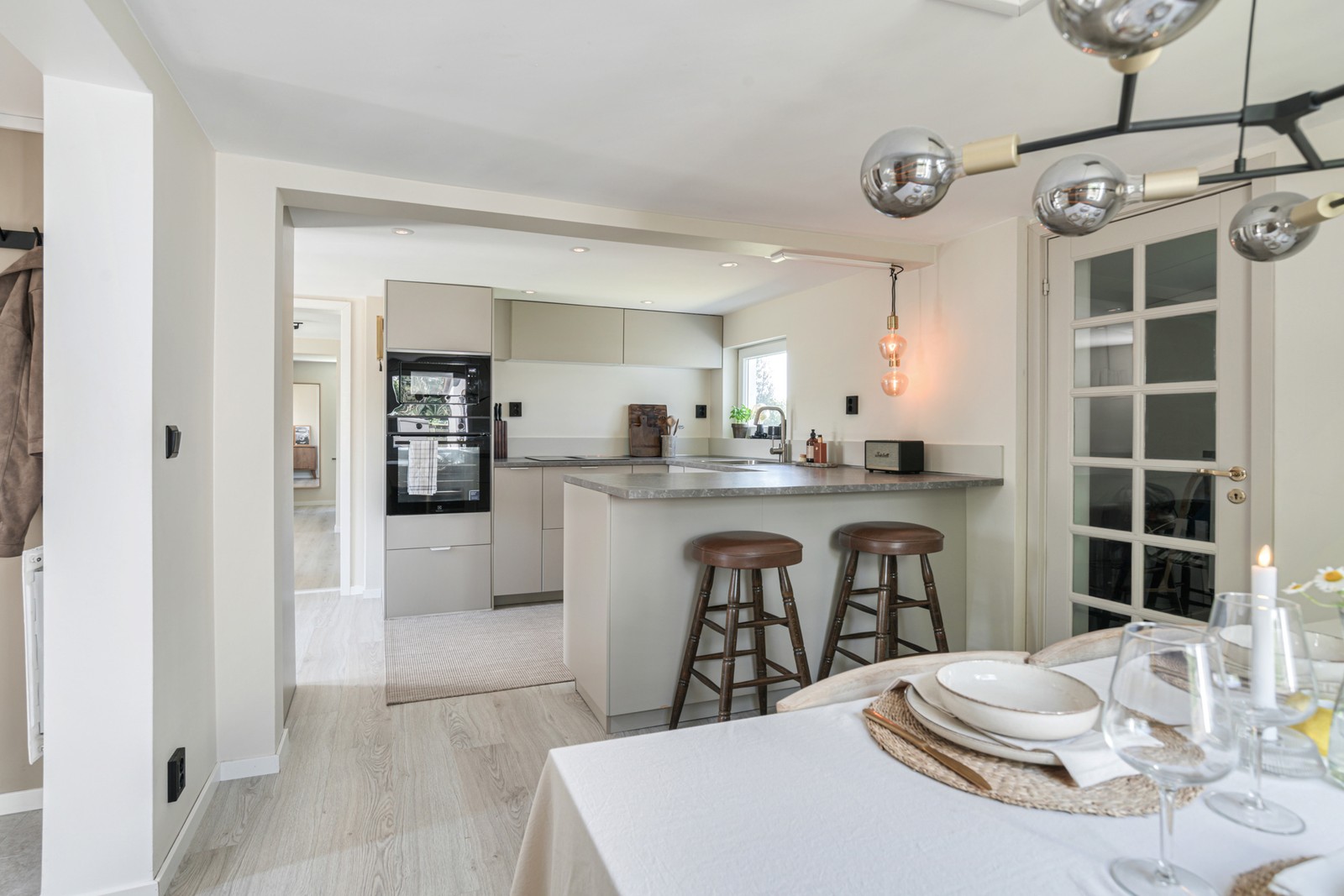 Invändigt välkomnas du av en genomtänkt planlösning som genomsyras av både funktion och värme. På entréplanet möts du av ljusa ytor och generösa sällskapsutrymmen – perfekt för både familjeliv och middagar med vänner. Här finns möjlighet till två rofyllda sovrum, ett kök med generösa arbetsytor och en inbjudande atmosfär, ett rymligt vardagsrum med plats för skratt och samtal, samt en praktisk tvättstuga. En trappa upp väntar två charmiga sovrum med snedtak och karaktär, samt ett smakfullt badrum som förenar estetik med funktion. Ute finns en trivsam trädgård och en solig uteplats som snabbt blir husets hjärta under sommarhalvåret – en plats för morgonkaffe i gryningen och ljumma kvällar under stjärnorna.