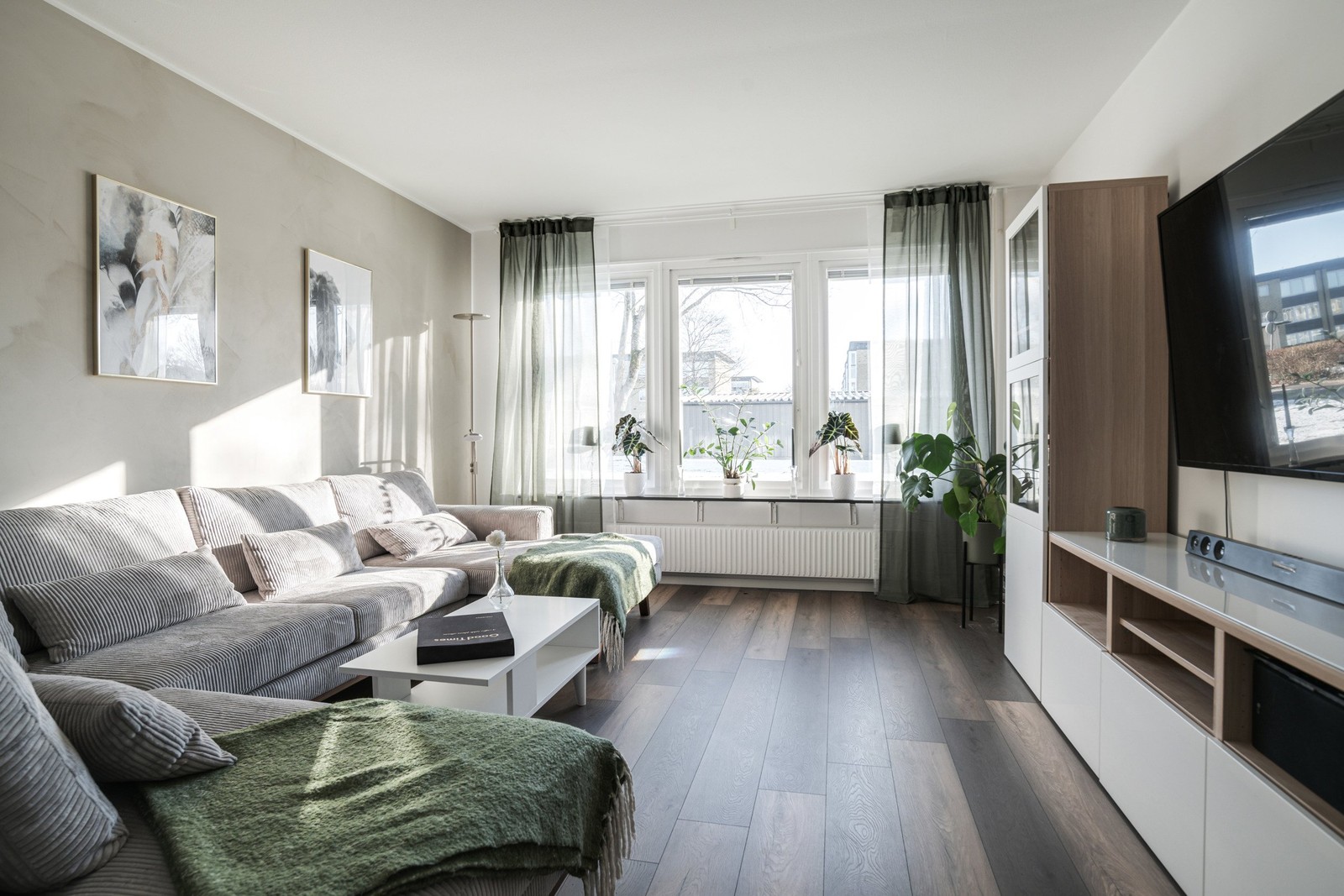 Du får en trivsam känsla genom hela bostaden tack vare härligt genomgående ljusinsläpp. Planlösningen är väldisponerad med morgonsolen från vardagsrummet och kvällssolen från köket. Vardagsrummet erbjuder en stor social yta där du får plats med både matbord och en större soffgrupp. I följd med vardagsrummet hittar du sovrummet med goda förvaringsmöjligheter. Från sovrummet når du även den generösa och härliga inglasade balkongen med syn mot innegården. Här har man sol hela kvällen, perfekt till kvällens umgänge. Vidare in i det tidlösa köket som erbjuder bra förvaring, goda arbetsytor och där man dessutom får plats med ett matbord. Detta är en bostad där du kan flytta rakt in och trivas med en modern tillvaro!
