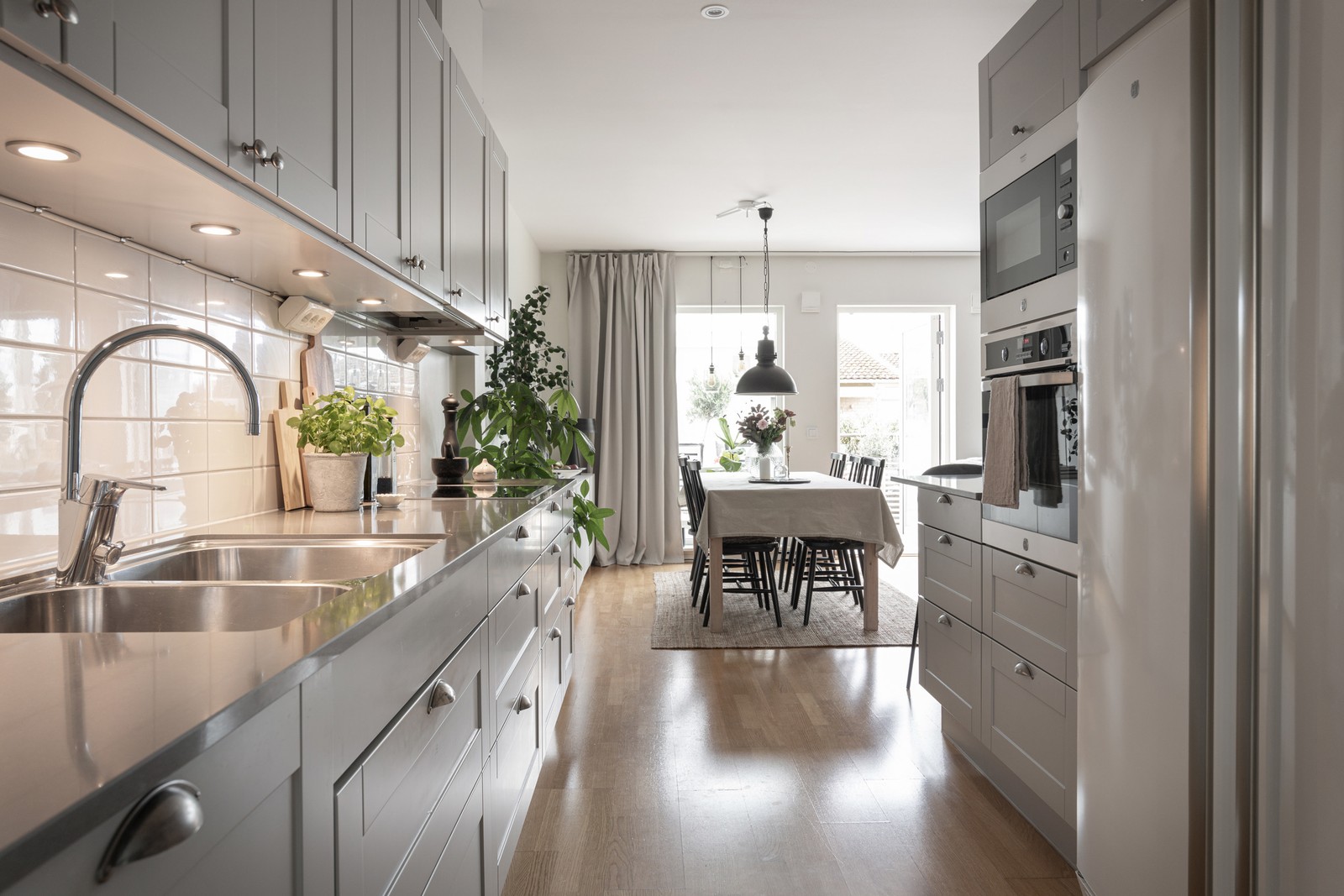 KÖK - Superfint HTH-kök med kakel ovan bänkskiva i sten. Diskmaskin, inbyggd mikro, inbyggd ugn, mekanisk fläkt, induktionshäll, kyl och frys. Släta målade väggar och trägolv. Här finns även en mindre köksö - perfekt att äta frukost vid. Släta målade väggar och trägolv.