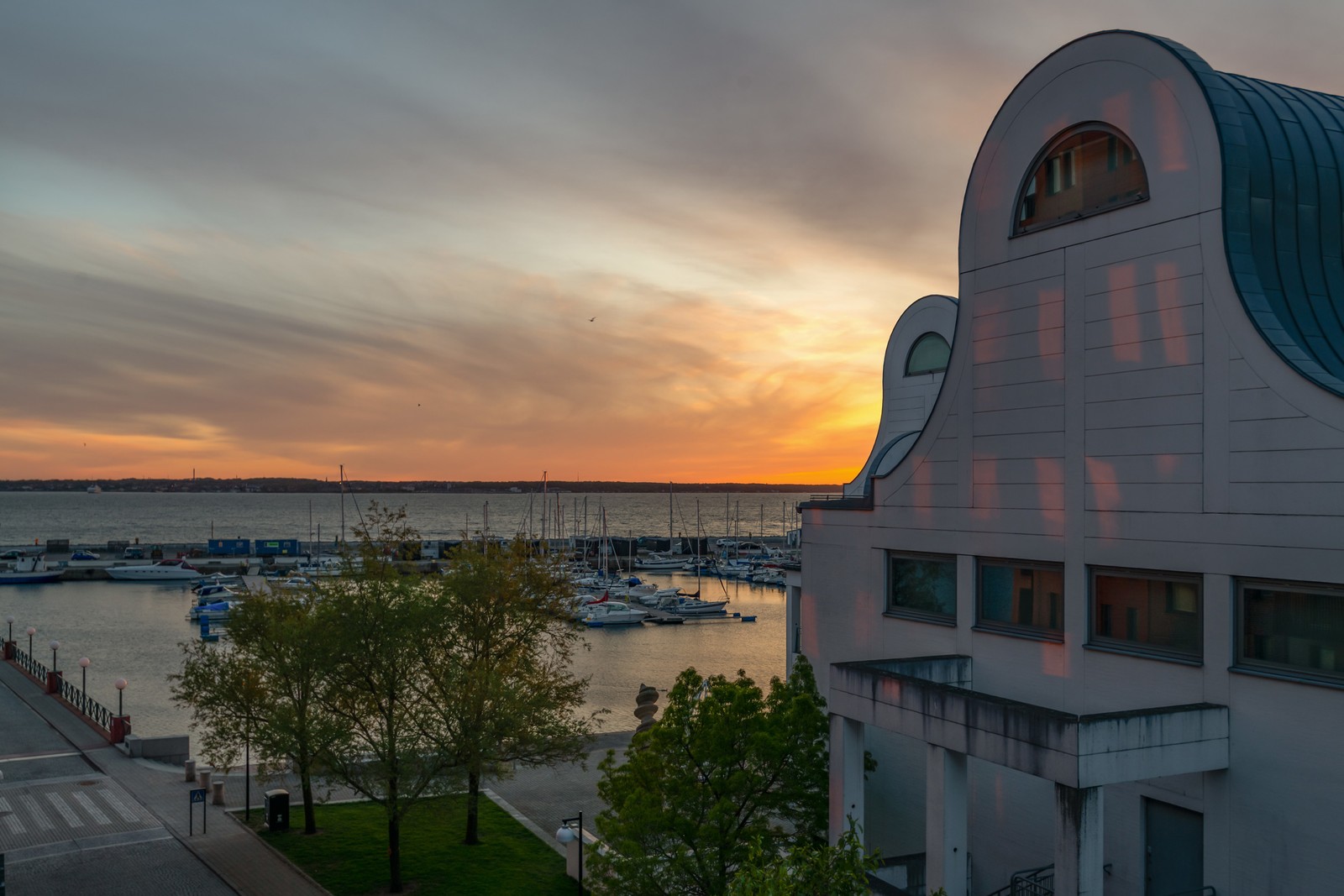 Från vardagsrummet kliver du ut på lägenhetens balkong, där det svarta smidesräcket ramar in en milsvid utsikt över Öresund. Från tidig morgonsol till kvällens sista glöd – detta är en plats för frukostar i mjuk morgonsol och vin under glittrande stjärnhimmel. Att bo här är att ha första parkett till varje solnedgång.