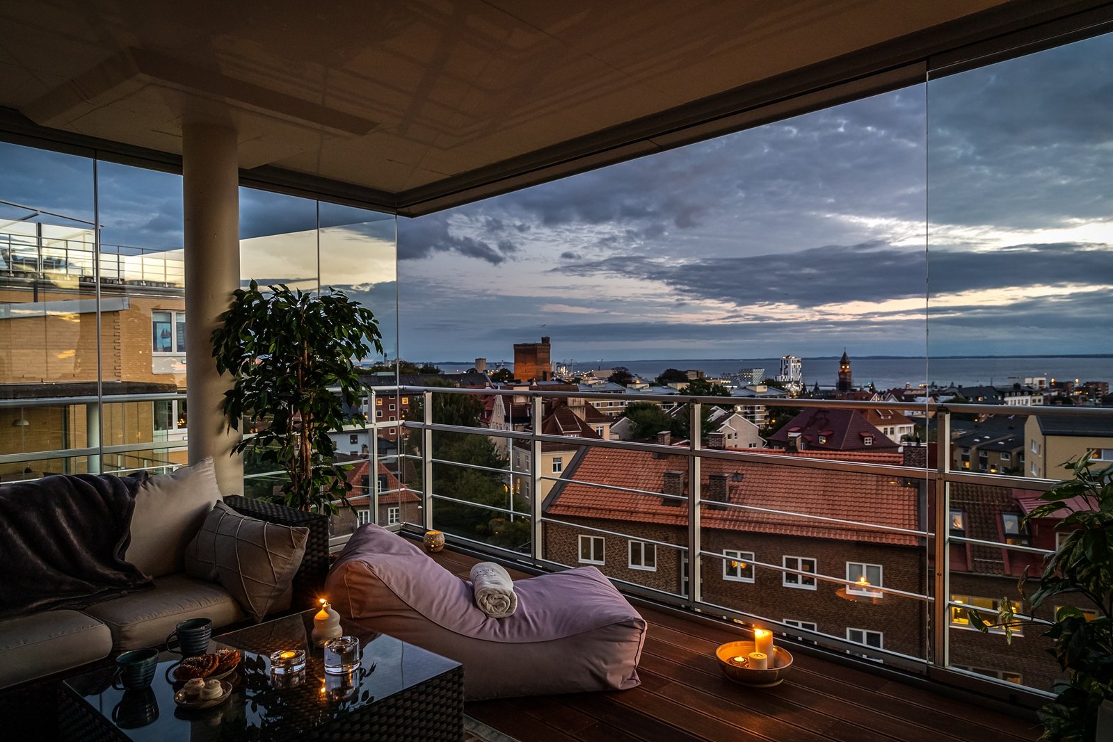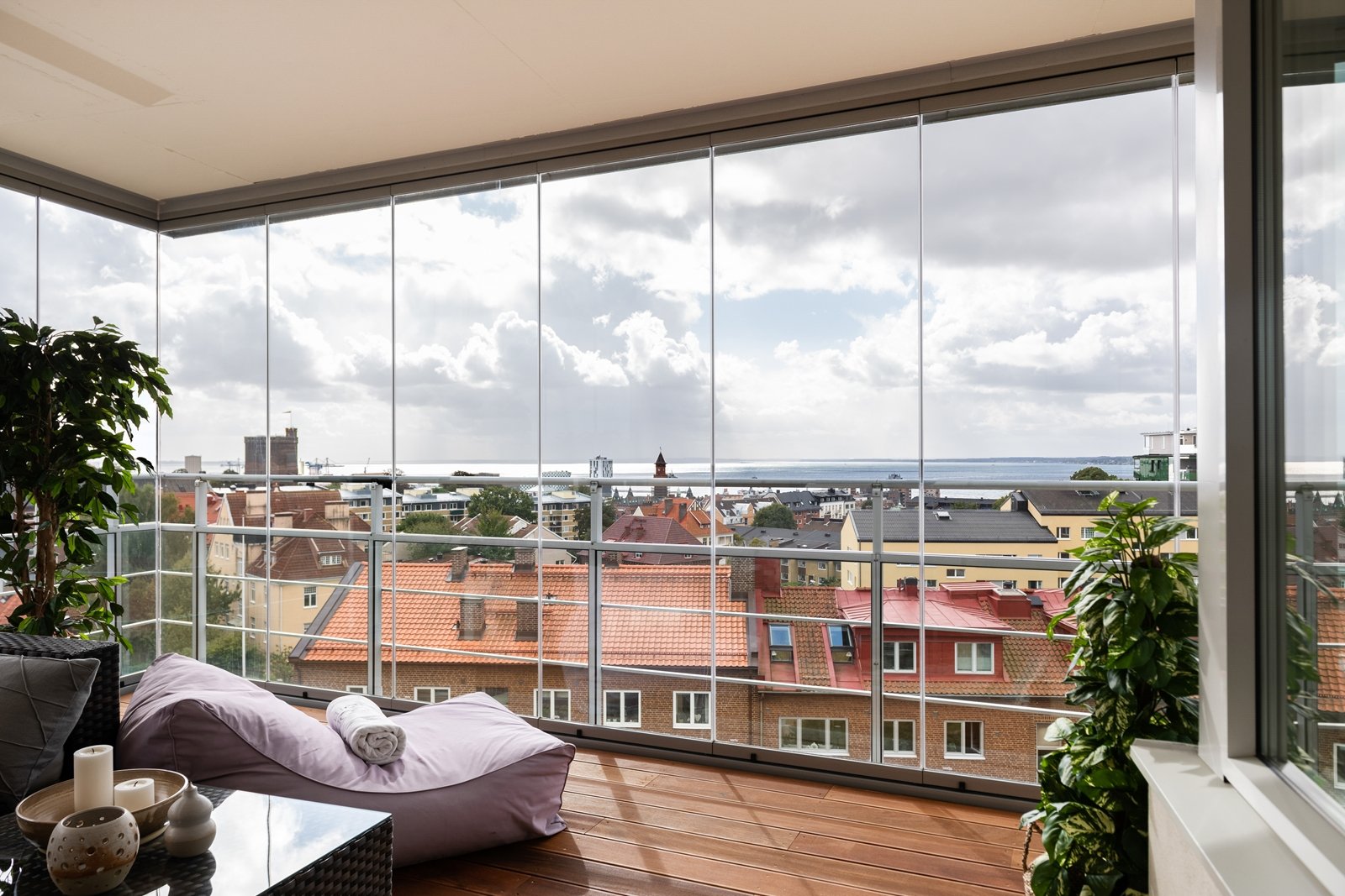 Storslagen utsikt över stad och sund med ljuvligt ljusinsläpp och öppna ytor!