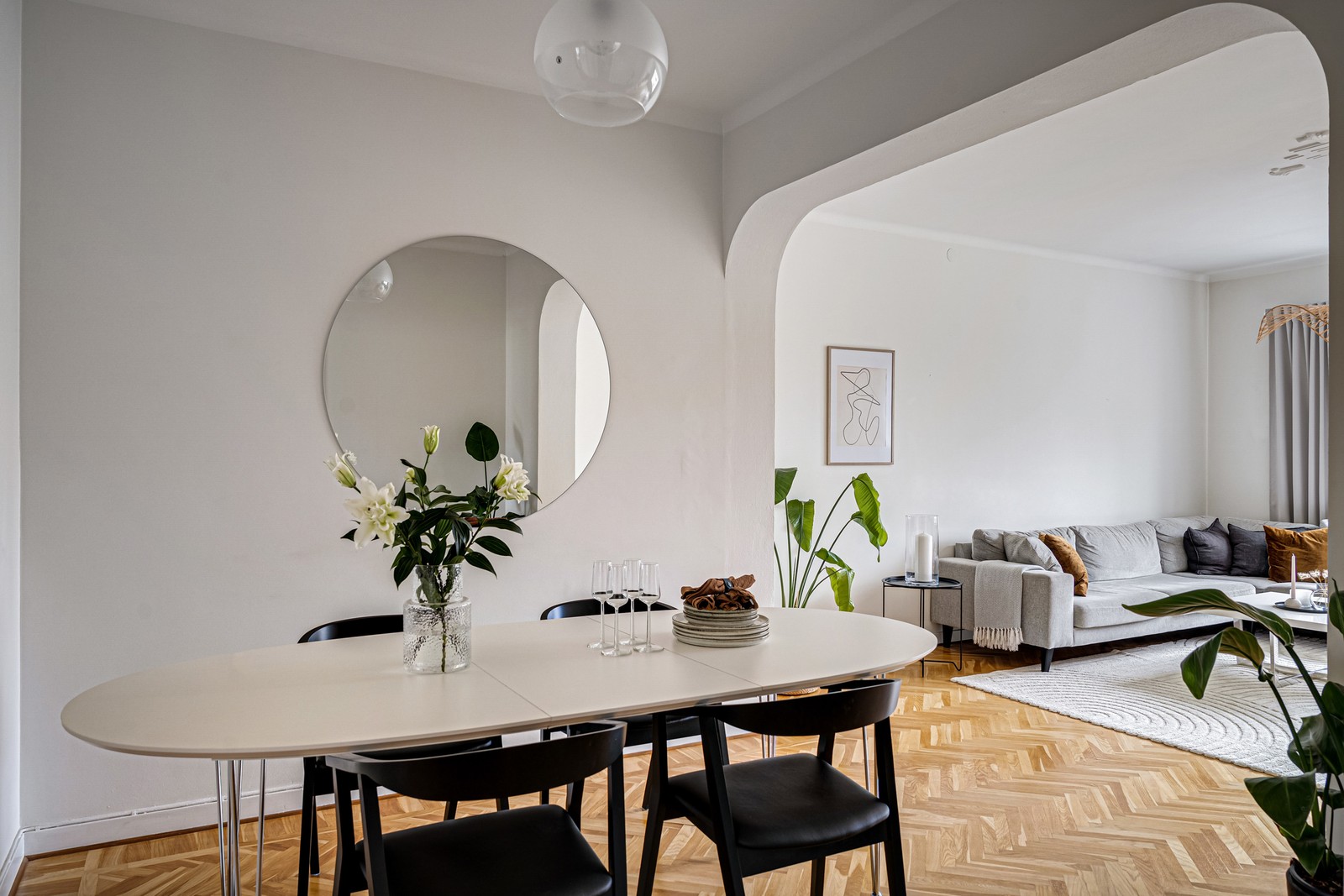 Stilren och rymlig tvårummare på populära Slottshöjden. Vacker fiskbensparkett och bra med förvaring