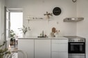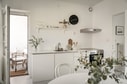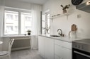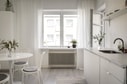 Köket är verkligen en pärla i denna lägenhet. Det är ljust och fräscht, med vita släta luckor som ger en modern och stilren atmosfär. Här finns gott om förvaringsutrymme och arbetsyta för att förverkliga dina matlagningsdrömmar. Med diskmaskin, kyl och frys, ugn och häll samt fläkt har du allt du behöver. Dessutom når du bostadens nyrenoverade balkong direkt från köket, vilket gör det enkelt att njuta av frisk luft samtidigt som du avnjuter din måltid.