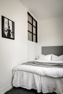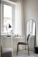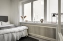 Vardagsrummet är smart avdelat för att ge plats åt ett avskilt sovrum. Genom att installera ett fönster i den avskiljande väggen har man lyckats skapa en ljus och luftig atmosfär i båda rummen. Här finns gott om utrymme för både en större säng i sovrummet och en bekväm soffgrupp i vardagsrummet. Du kan enkelt inreda efter dina önskemål och skapa en perfekt miljö för avkoppling och social samvaro.