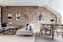 Vidare in i sovrummet som ramas in av moderna industriväggar finns bra med plats för säng, förvaring. Även här följer tegelväggen samt det vitlaserade brädgolvet.