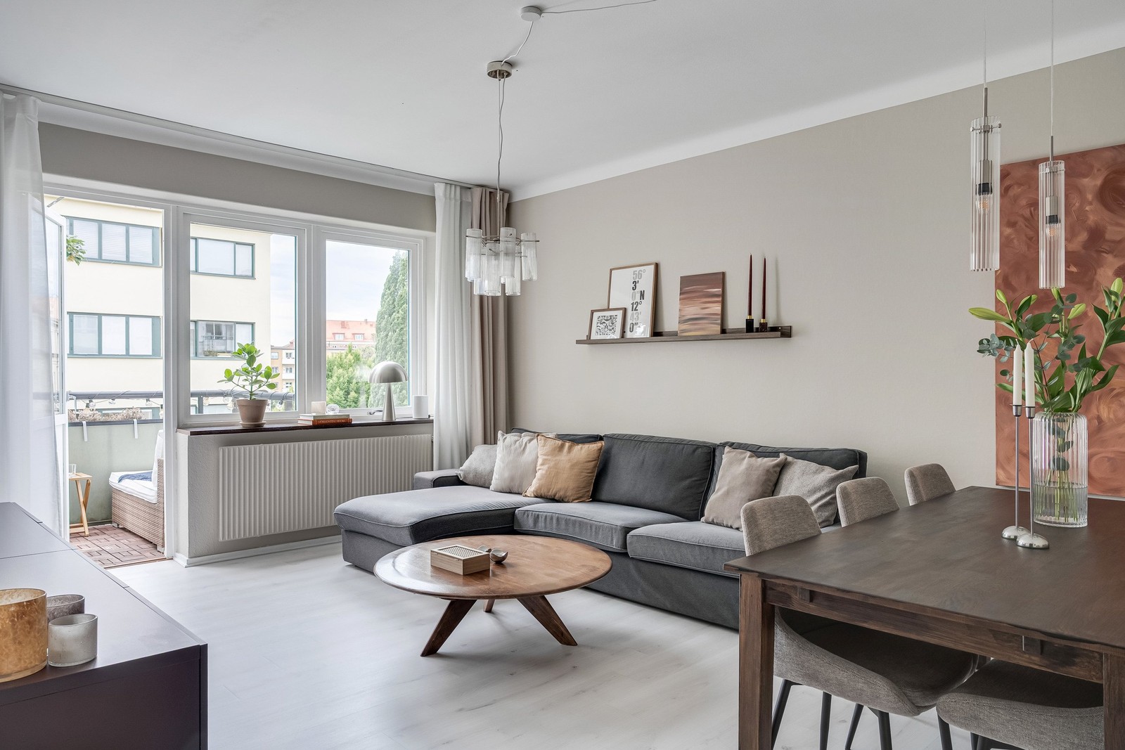 Denna förtjusande bostad på 64 kvm erbjuder en genomtänkt planlösning och moderna detaljer som gör den perfekt för både den som söker komfort och stil. Här får du ett renoverat kök , som ger ett sofistikerat och stilrent intryck, och en smakfull kontrast till de ljusa ytskikten i övriga lägenheten. Det stora vardagsrummet erbjuder gott om plats för både soffgrupp och matgrupp – ett utmärkt utrymme för sociala sammanhang eller avkoppling. Här når man även bostadens ljuvliga balkong i solsäkert läge.