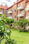 Vardagsrummet förlängs av balkongen som vetter mot en grönskande innergård. Här sitter du i ett lugnt och insynsskyddat läge med en trivsam utsikt, perfekt för både morgonkaffe och avkoppling.